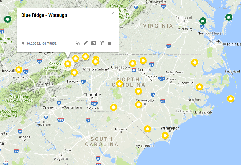 Located in Vilas North Carolina, the Watauga Community Solar Project provides 117.76 kW of solar energy. The project went live in June 2016. Blue Ridge Energy, a distribution cooperative of NRCO Member NCEMC, owns and manages the site through a community solar program open to its members. You can find more information here.